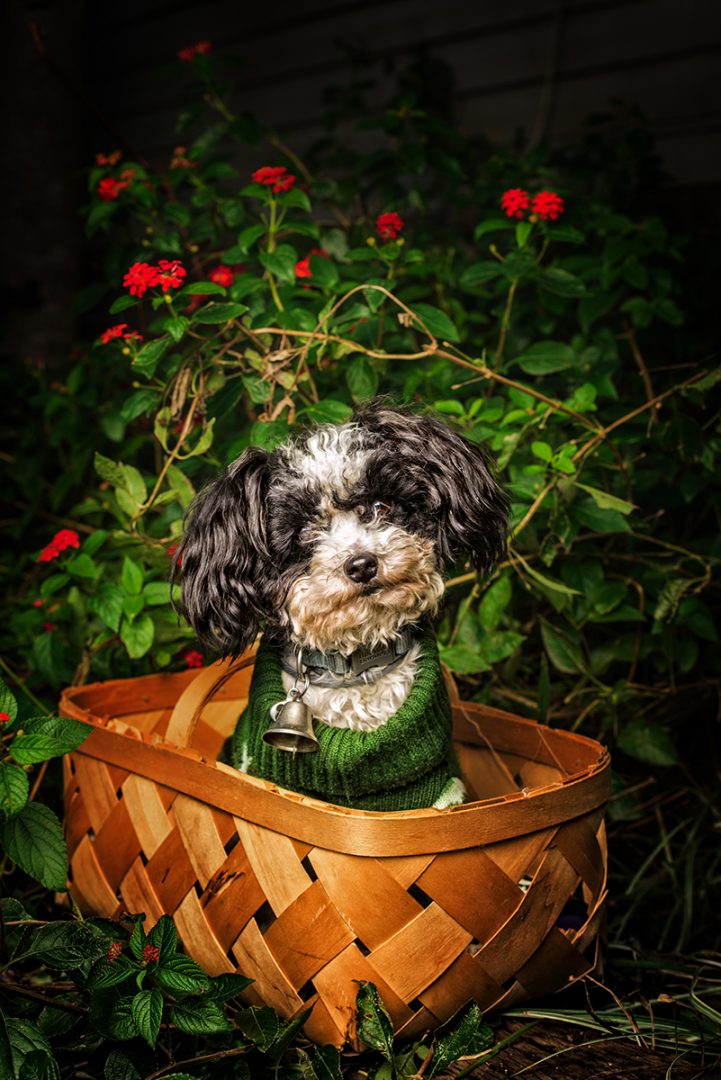 Trish Barini's puppy, Frazier, sits in an Easter basket amongst Spring flowers.