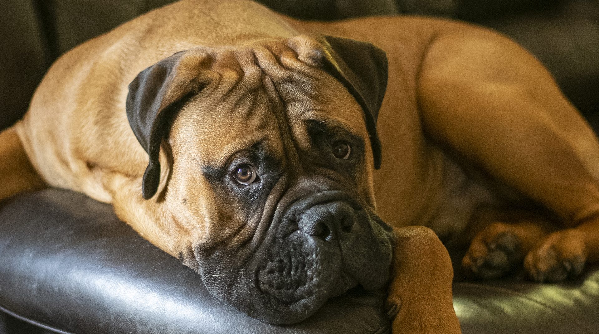 Previous Image Next Image Orion the Bullmastiff Orion doing his favorite activity…lying on the couch. Orion doing his favorite activity…lying on the couch.