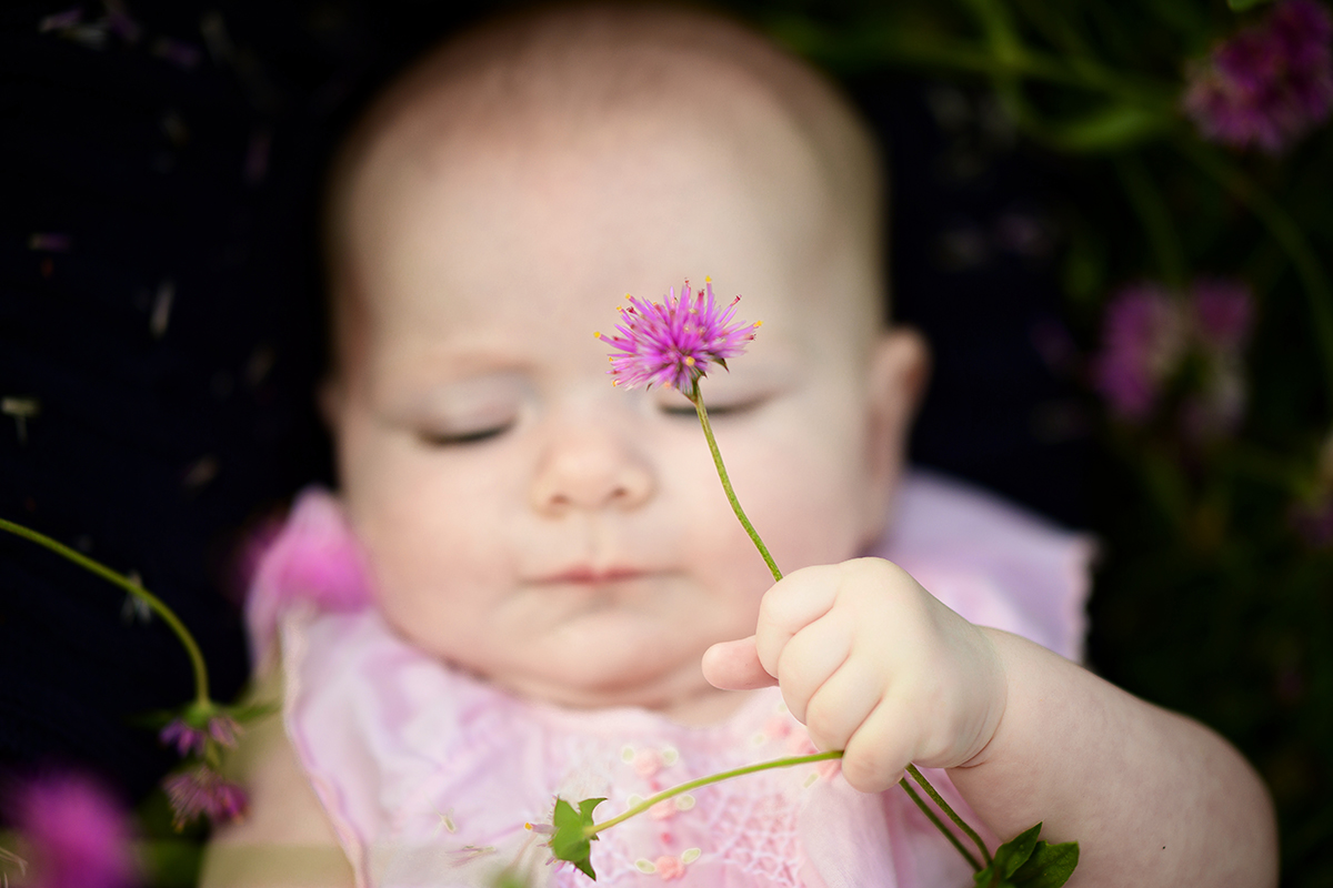 Previous Image Next Image Wiggans Baby Blossom A baby clutches a Spring flower in her hand. A baby clutches a Spring flower in her hand.